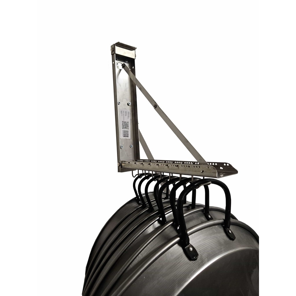 Il Paella Magic Store® è la soluzione perfetta al problema della mancanza di spazio nelle nostre cucine o aree di stoccaggio per tutte le nostre paelle. La sua dimensione compatta nasconde un braccio estensibile su cui possiamo appendere le nostre paelle, riducendo al minimo lo spazio utilizzato per conservarle. Queste possono essere ripiegate contro il muro quando non vengono utilizzate.