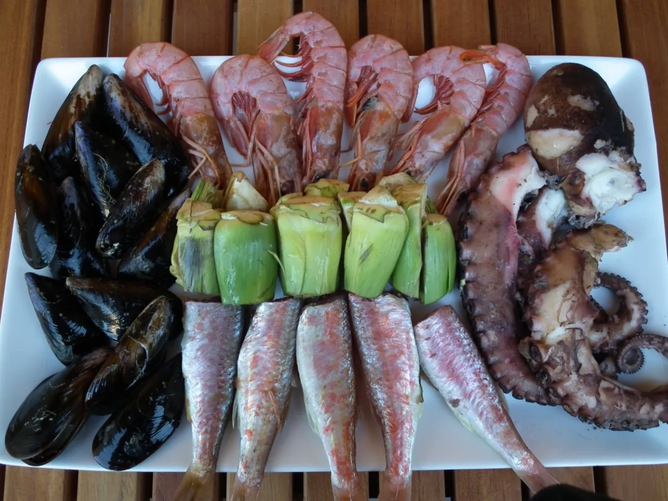 A questo punto aggiungiamo anche il polpo cotto, le triglie, i gamberi e le cozze che andranno adagiate decorando la paella No mescolate ancora per non rompere il chicco di riso. Riscaldare forte per iniziare a bollire. Il fuoco è fondamentale in questo processo, lo scopo è che a 20 minuti di cottura il riso sia cotto e la paella senza brodo, più fuoco meno acqua e viceversa.