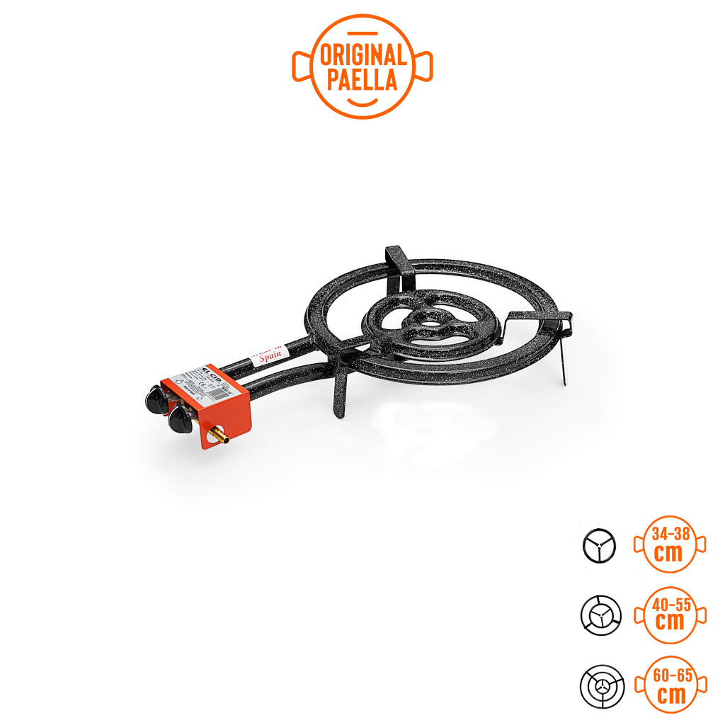 - Bruciatori per uso indipendente è molto versatile ideale per padelle per paella di 2 a 25 Persone, con il piccolo anello puoi cucinare paelle da 34-40 cm e con i 2 anelli puoi cucinare paelle da 50 a 65 cm.