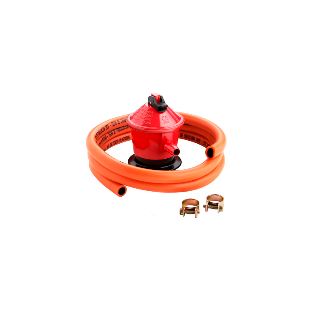 Contiene un regolatore di gas propano da 50 MBAR e un tubo flessibile del gas con 2 morsetti, perfetto per un collegamento sicuro della tua attrezzatura.