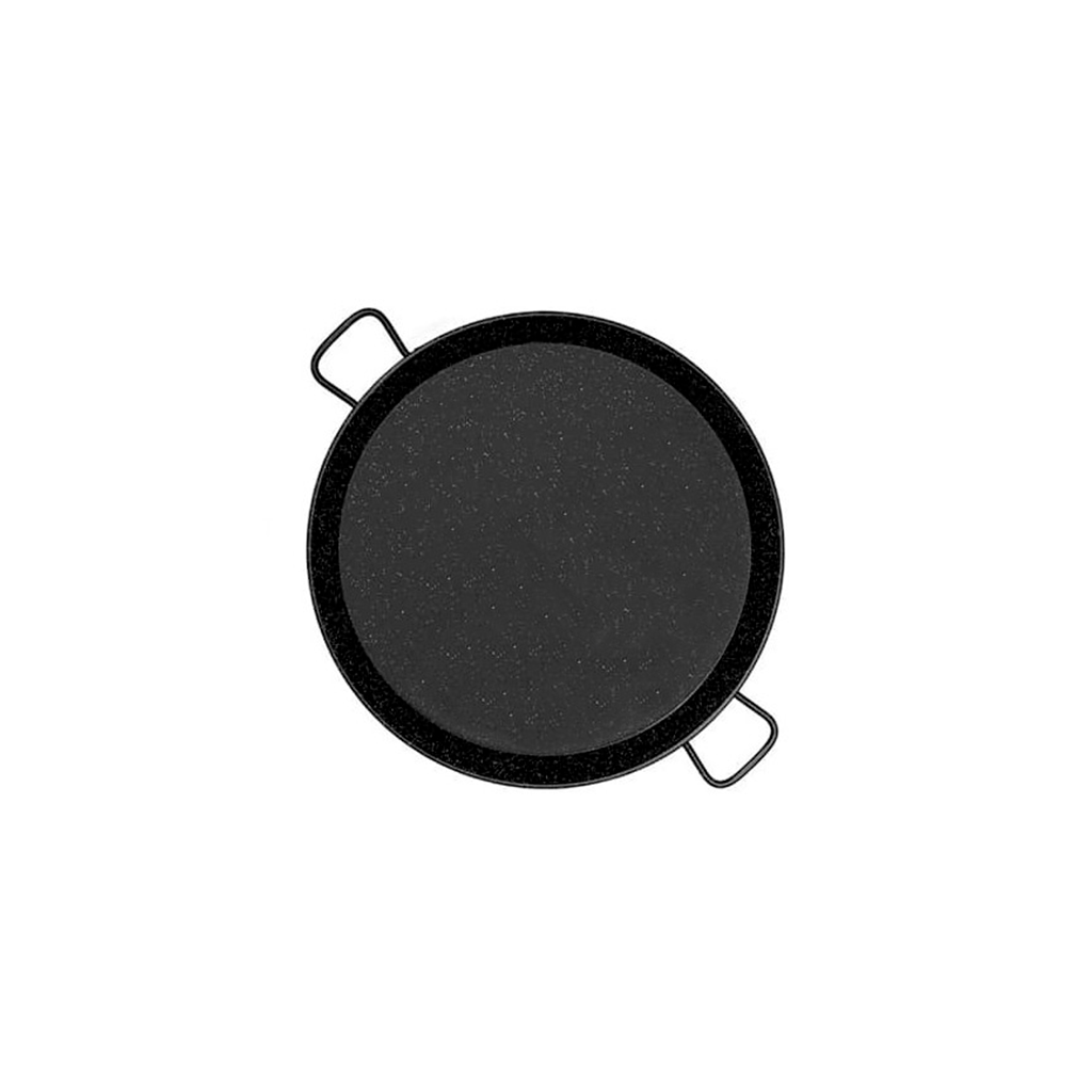 La padella per paella smaltata è realizzata in acciaio e ricoperta da uno smalto maculato bianco e nero che le conferisce protezione contro l'ossidazione. Le padelle smaltate per paella sono facili da pulire e da riporre, non necessitano di manutenzione, non arrugginiscono e non necessitano di uno strato di olio dopo l'uso.