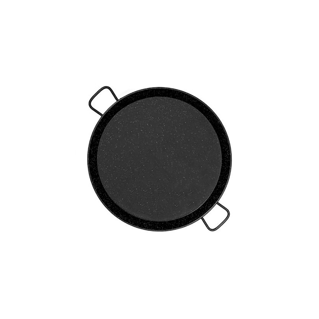 La padella per paella smaltata è realizzata in acciaio e ricoperta da uno smalto maculato bianco e nero che le conferisce protezione contro l'ossidazione. Le padelle smaltate per paella sono facili da pulire e da riporre, non necessitano di manutenzione, non arrugginiscono e non necessitano di uno strato di olio dopo l'uso.
